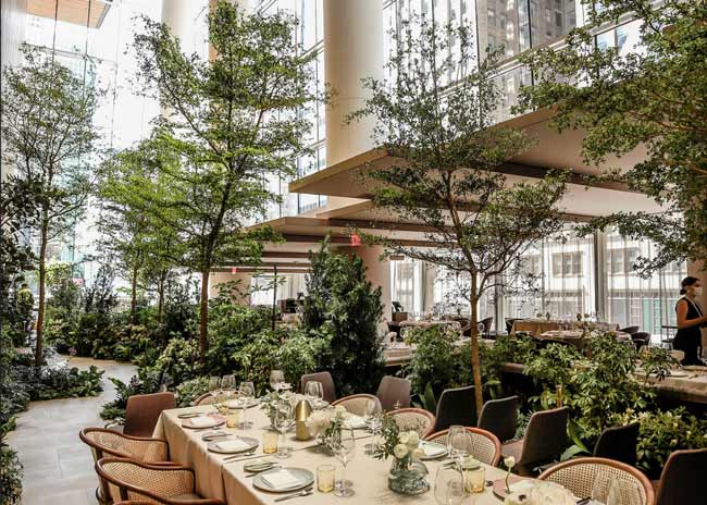 Le Pavillon sits at the heart of Midtown Manhattan inside One Vanderbilt, where soaring glass ceilings and lush living greenery create an atmosphere that feels remarkably open - as though dining beneath the sky itself. The restaurant earned its Michelin star under the direction of acclaimed chef Daniel Boulud, one of the most celebrated names in French cuisine, whose signature touch is felt in every thoughtfully composed dish. An elegant setting for an evening of exceptional food and conversation.