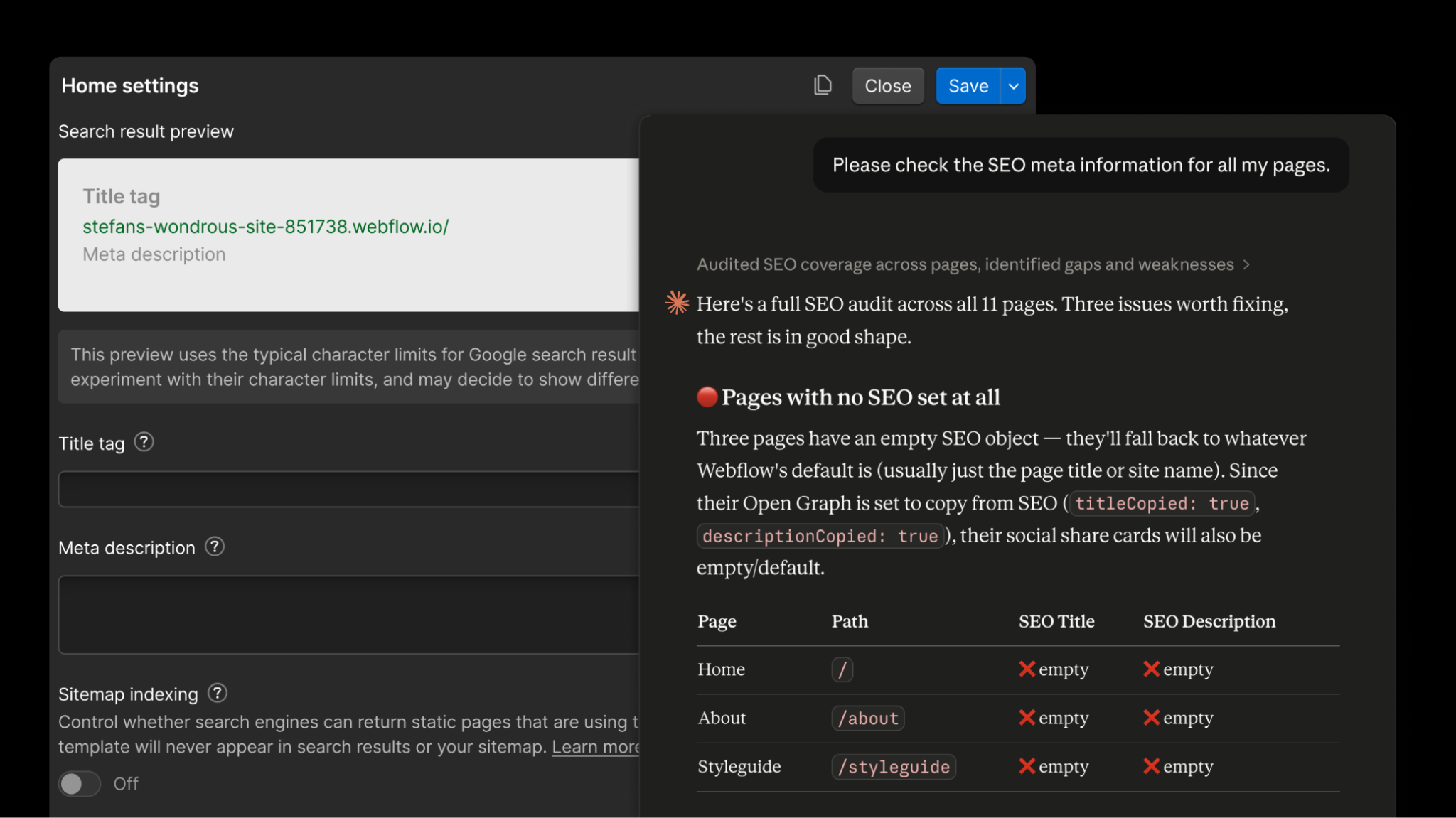 And the next time you catch yourself clicking through page settings one by one, give the Claude connector a try. You might be surprised how much you can get done without ever opening Webflow.