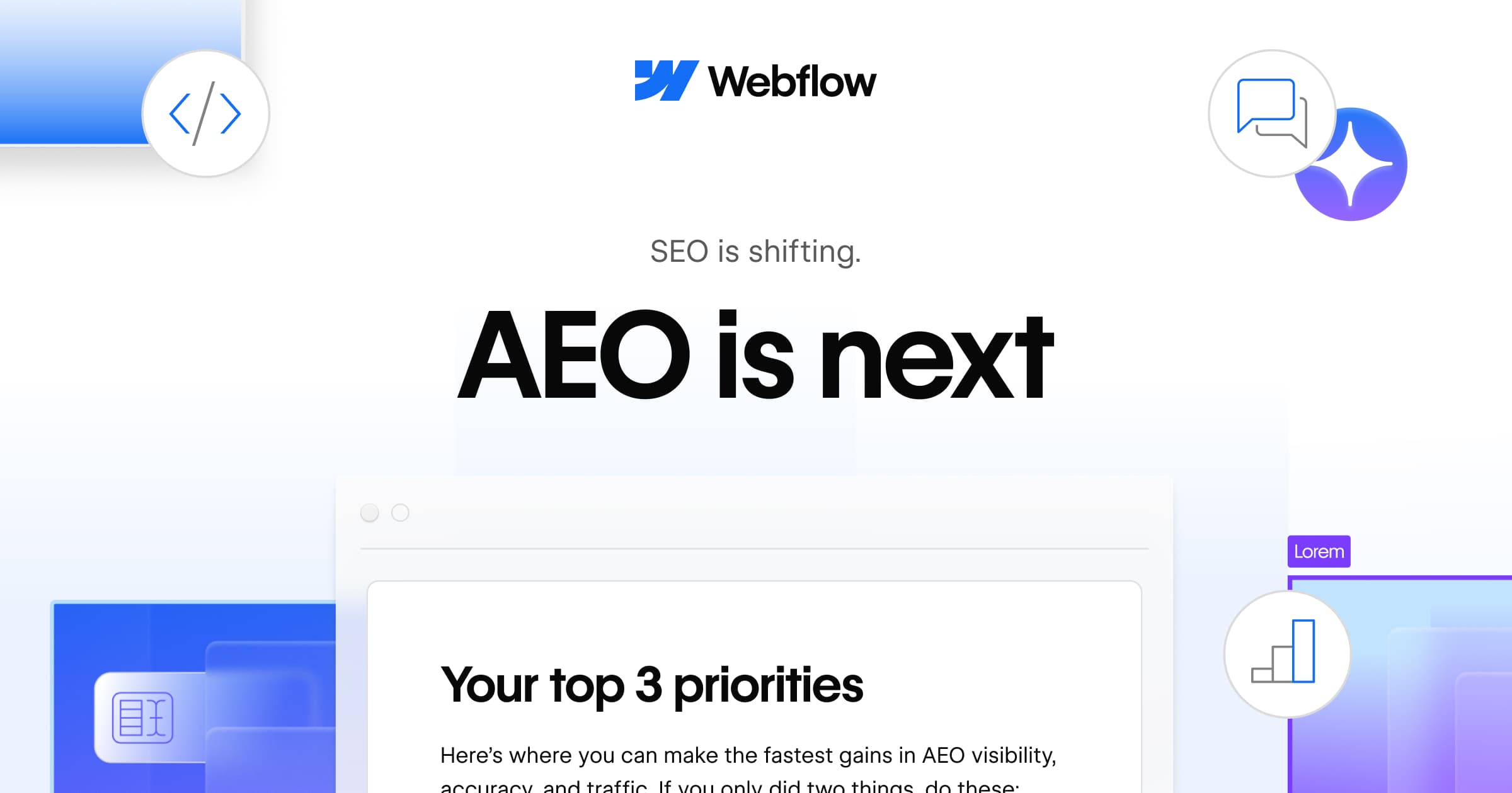 See how AI engines find your brand. Get prioritized recommendations. Ship improvements. All within Webflow.
